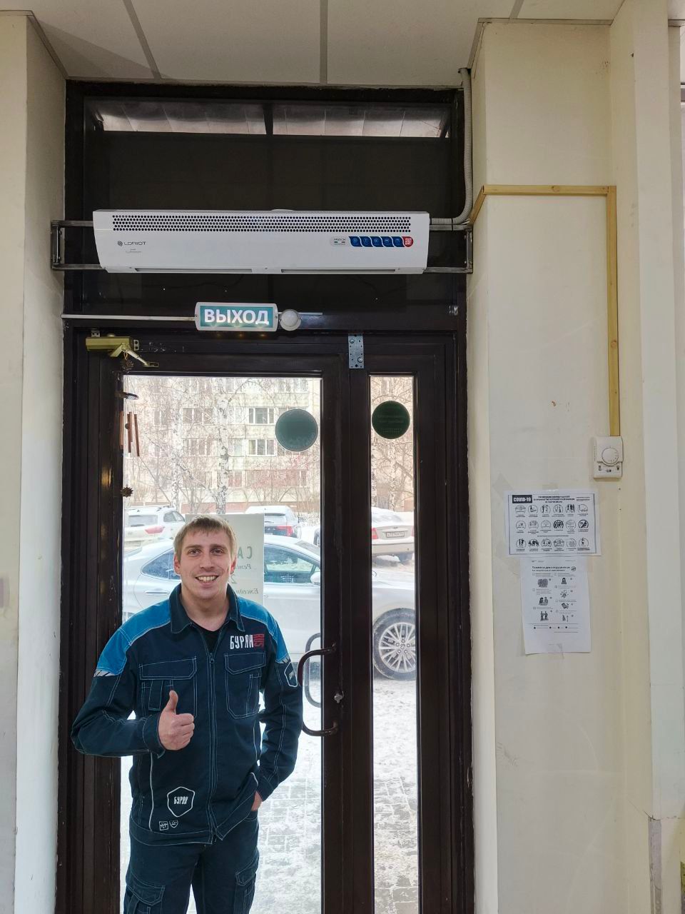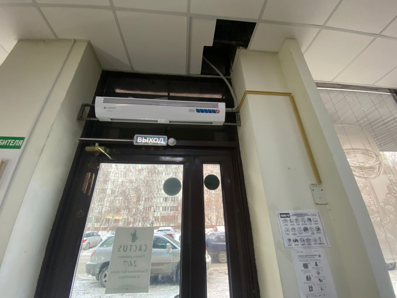 Компания "Буран" успешно установила тепловую завесу LORIOT LTZ-6.0 S на входе продуктового магазина