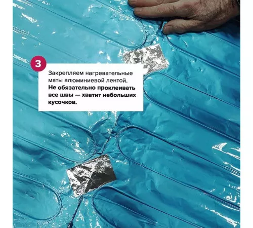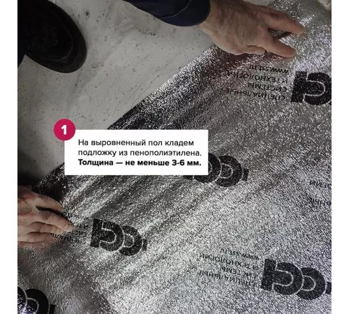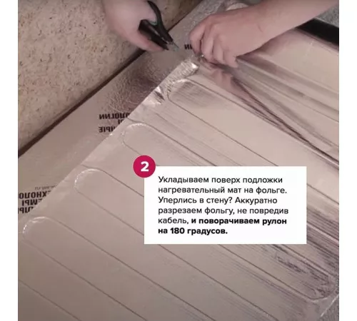 - Тонкий теплый пол на основе миниатюрного нагревательного кабеля, уложенного между слоями фольги.