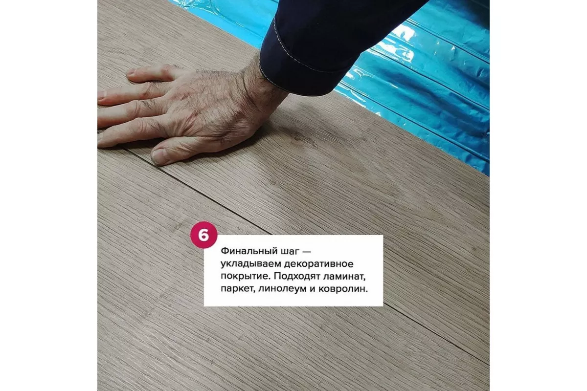 - Тонкий теплый пол на основе миниатюрного нагревательного кабеля, уложенного между слоями фольги.