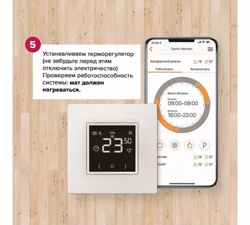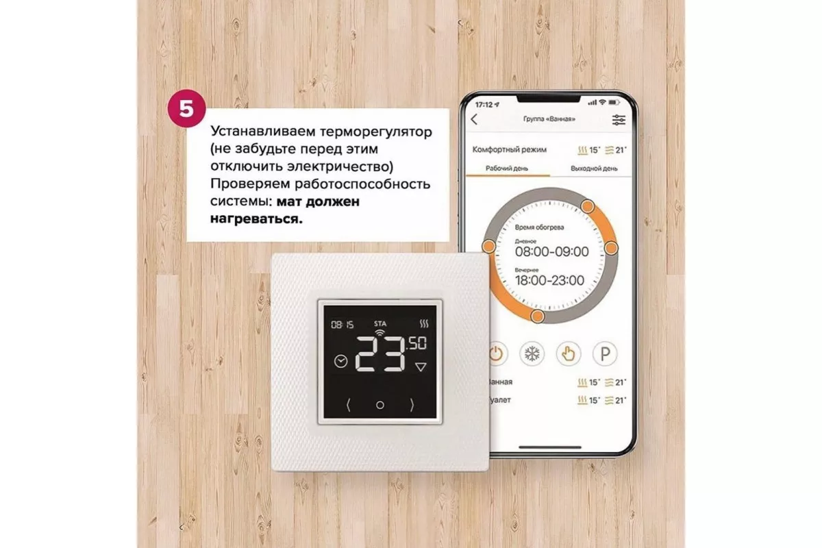 - Максимально быстрый монтаж – разложи и подключи терморегулятор (без монтажа соединений).