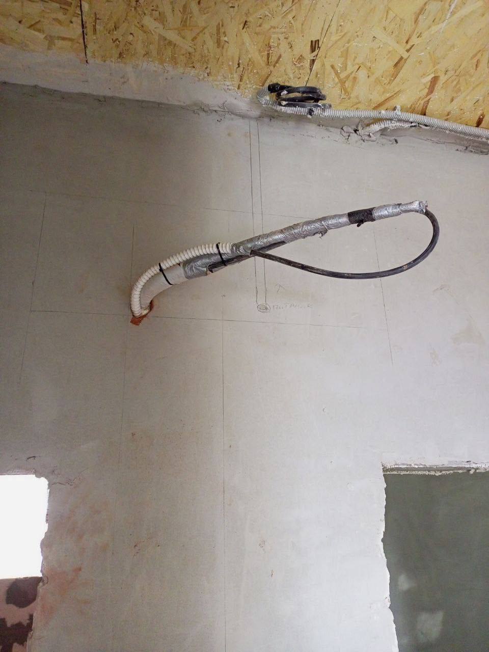 Штроба выполнена практически идеально, трасса заложена, кондиционер выбран приобретён и ждет на объекте довески как только строительные работы будут закончены.