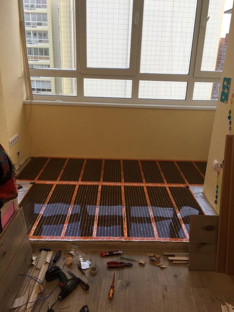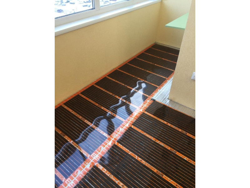 В конкретном случае обогрев пола был выполнен с помощью инфракрасного пленочного теплого пола EASTEC Energy Save PTC 220Вт (Ширина 80см) с эффектом  саморегуляции на 30%, который позволяет значительно снизить  вероятность перегрева пленки  и напольного покрытия.
