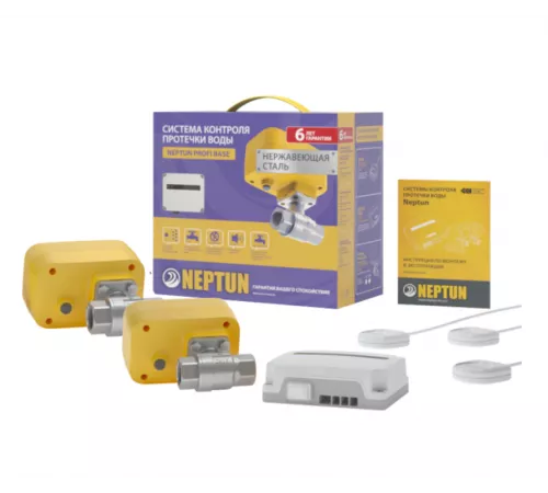 Система контроля протечки воды Neptun Base предназначена для своевременного обнаружения и локализации протечек воды в системе водоснабжения и отопления жилых домов, коттеджей, офисных зданий, магазинов. Система заблокирует подачу воды до устранения причин протечки и проинформирует о возникшей аварии звуковым и световым сигналами.